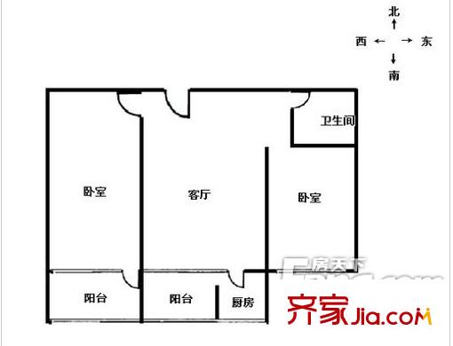 公安局宿舍户型图两室一厅 2室1厅1卫1厨
