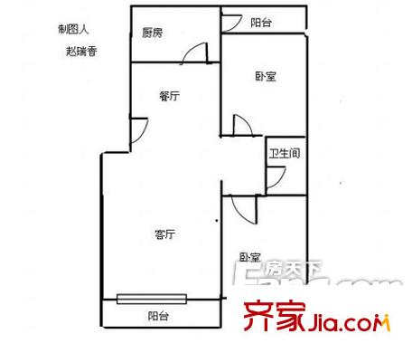 帅府小区户型图两室两厅 2室2厅1卫1厨