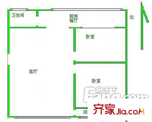 勘察中区户型图两室一厅 2室1厅1卫1厨