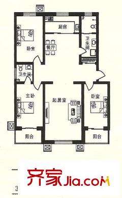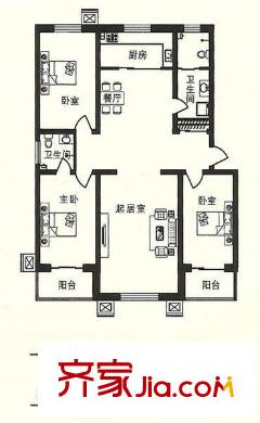 和谐家园户型图三室一厅 3室1厅2卫1厨