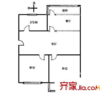 二运宿舍(红阳路)户型图 二运宿舍(红阳路) 户型图 2室2厅1卫1厨