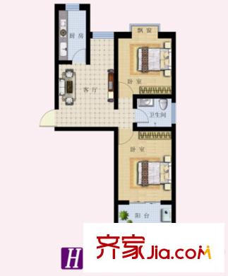东湖北郡已售完H户型 2室1厅1卫1厨