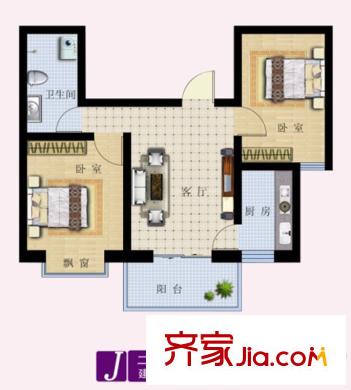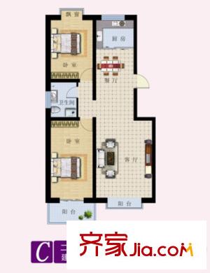 东湖北郡C户型 2室2厅1卫1厨