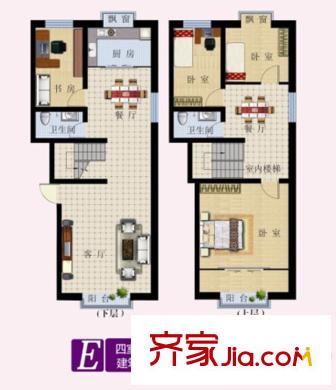 东湖北郡E户型 4室3厅2卫1厨