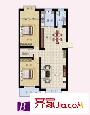 东湖北郡B户型 2室2厅1卫1厨