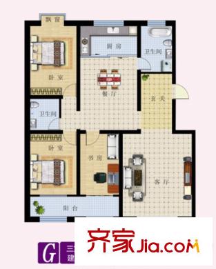 东湖北郡G户型 3室2厅2卫1厨