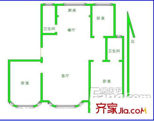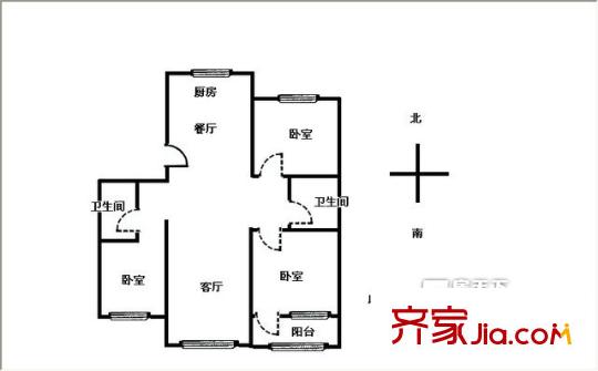 恬静园户型图三室两厅 3室2厅1卫1厨