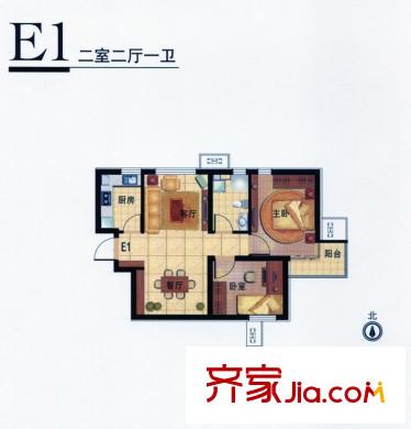 九号国际城售完高层E1平方米型 2室2厅1卫1厨