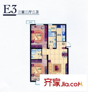 九号国际城售完高层E3平方米型 2室2厅2卫1厨