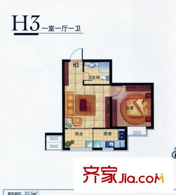 九号国际城57.50㎡h3一室一厅一卫户型