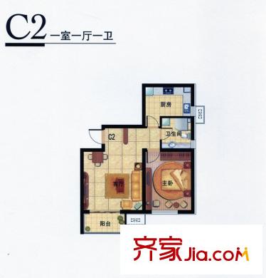 九号国际城高层C2平方米型 1室1厅1卫1厨