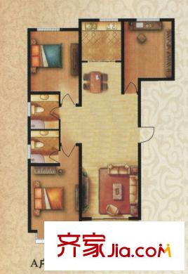 利家世纪城137.00㎡B户型三室两厅两卫户型3室2厅2卫