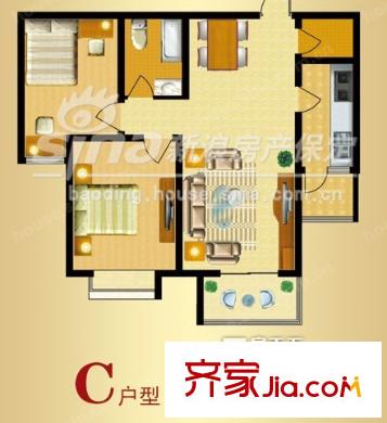 利家世纪城99.00㎡C户型-两室两厅一卫户型2室2厅1卫