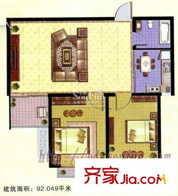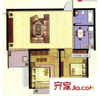 世家郦园户型图两室一厅-92平