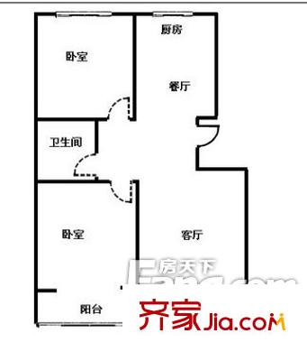 新一代B区户型图两室 2室2厅1卫1厨