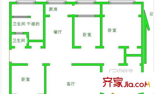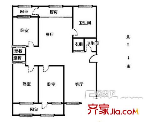 新一代B区户型图四室两厅 4室2厅2卫1厨