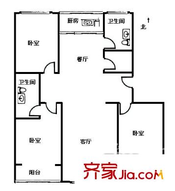 花倾城户型图三室两厅 3室2厅1卫1厨