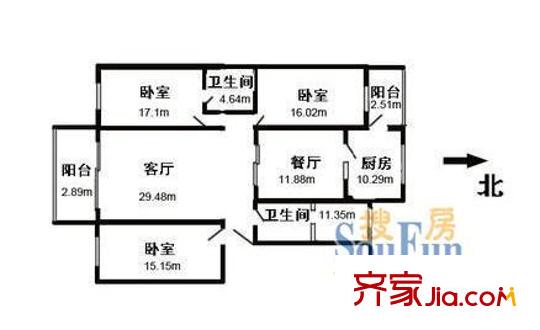 燕郊银燕小区户型图户型图 3室2厅2卫1厨