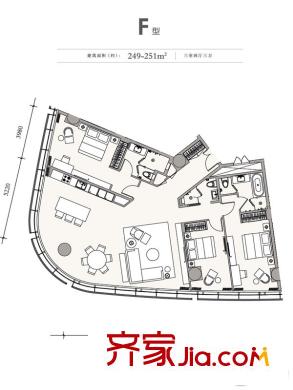 成都银泰中心1号楼F户型 3室2厅3卫
