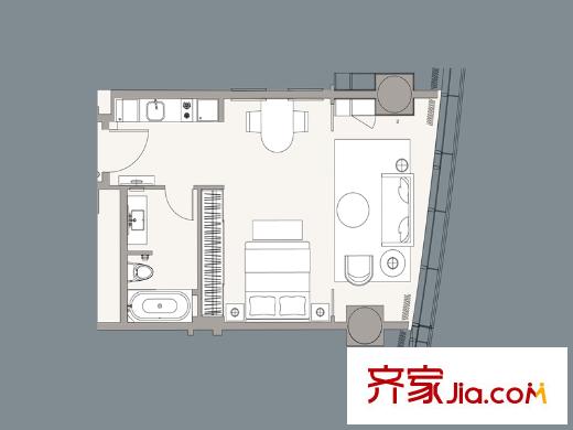 成都银泰中心华悦居C户型 1室2厅1卫1厨