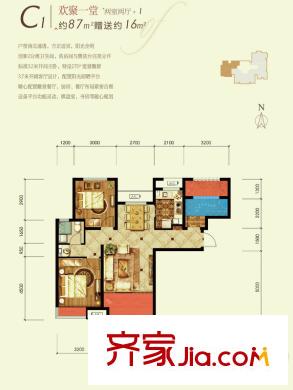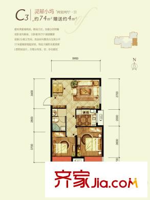 潮白河孔雀城剑桥郡C3户型 2室2厅1卫1厨