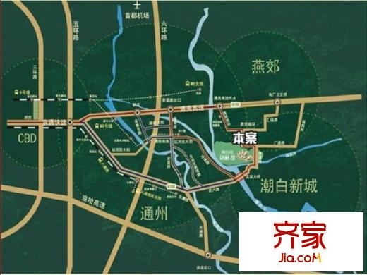 潮白河孔雀城剑桥郡交通图