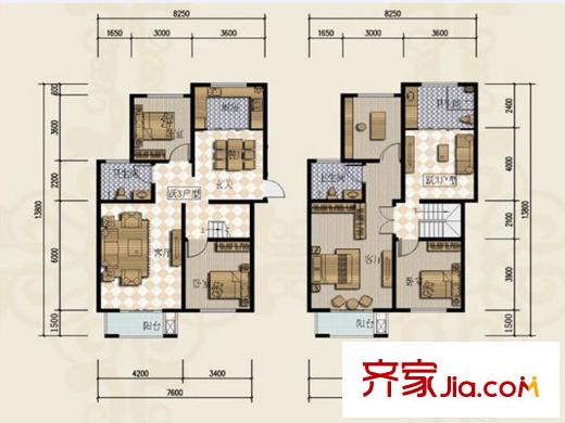 三田雍泓・青海城一期跃层户型 5室2厅3卫1厨