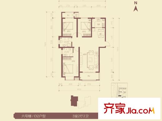 三田雍泓・青海城一期6号楼D2户型 3室2厅2卫1厨