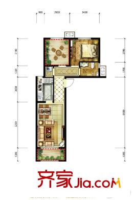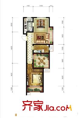永定河孔雀城美丽园C户型 1室2厅1卫1厨