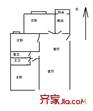 流星花园一区户型图户型图 2室2厅2卫1厨