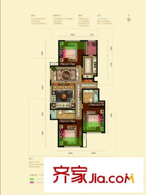 世嘉正园一期4#B2户型图 3室2厅2卫1厨