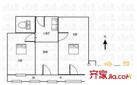万明路18号院户型图户型图 2室1厅1卫1厨