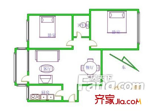 大钱市胡同户型图户型图 2室2厅1卫1厨