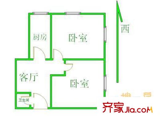 六铺炕三区户型图户型图 2室1厅1卫1厨