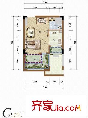 天籁谷国际旅游度假区一期MINI别墅2号楼二层三层C2户型 1室1厅1卫1厨