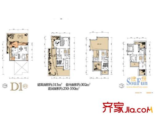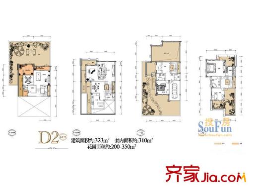 联发瞰青墅1期坡地别墅D1栋跃层02户型 3室2厅4卫1厨