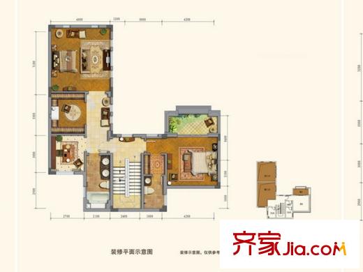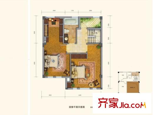 协信溪山墅一期联排210平户型地上二层 2室1厅1卫