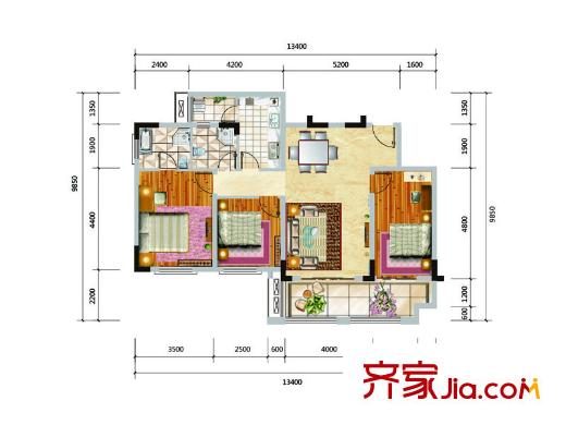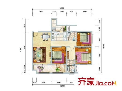 盛唐叠彩山一期1-6号楼标准层C户型 3室2厅2卫1厨