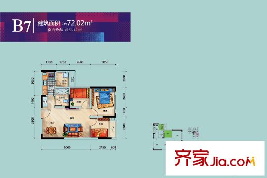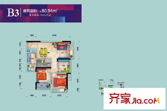 万友四季缤纷一期高层标准层B7户型 3室2厅1卫1厨