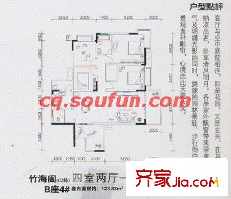缙麓商都雅苑户型图竹海阁C座4# 4室2厅2卫1厨