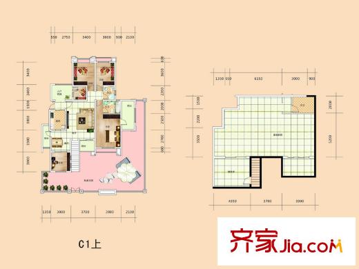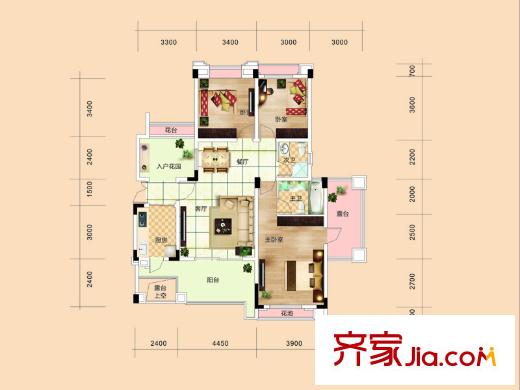 海宇学府江山二组团1-12幢及三组团1/2幢标准层C1户型 4室2厅2卫1厨
