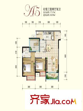 贝蒙天地锦轩一期高层所有楼栋标准层A5户型 3室2厅2卫