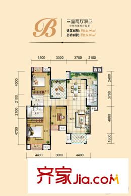 贝蒙天地锦轩一期洋房4号楼标准层B户型 3室2厅2卫1厨