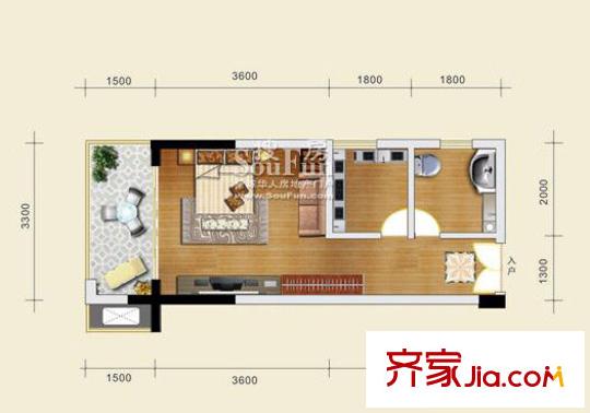 金地豪苑户型图B7 1室1厅1卫1厨