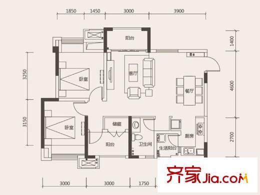协信阿卡迪亚江山凌云一期1号楼跃层A1户型 3室2厅2卫1厨