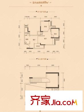 协信阿卡迪亚江山凌云一期1号楼跃层A1户型 3室2厅2卫1厨