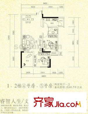 水务龙城天都户型图1、2栋4、5号房 2室2厅1卫1厨