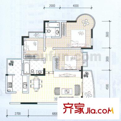 鸳鸯北湖郡户型图6号 2室2厅2卫1厨