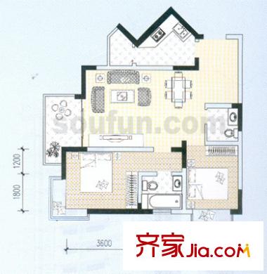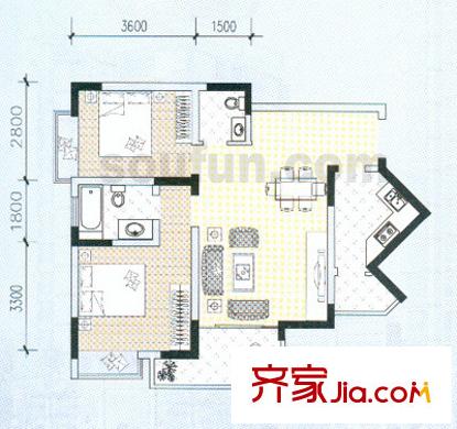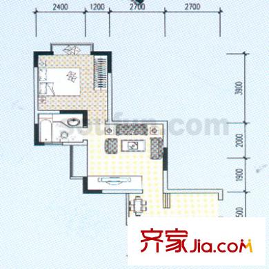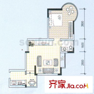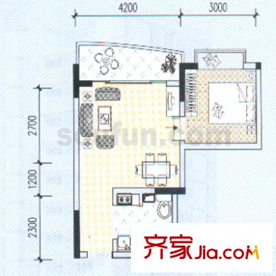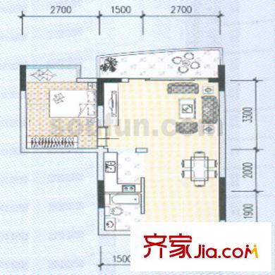 鸳鸯北湖郡户型图3号 1室2厅1卫1厨