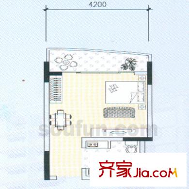 鸳鸯北湖郡户型图4号 1室2厅1卫1厨